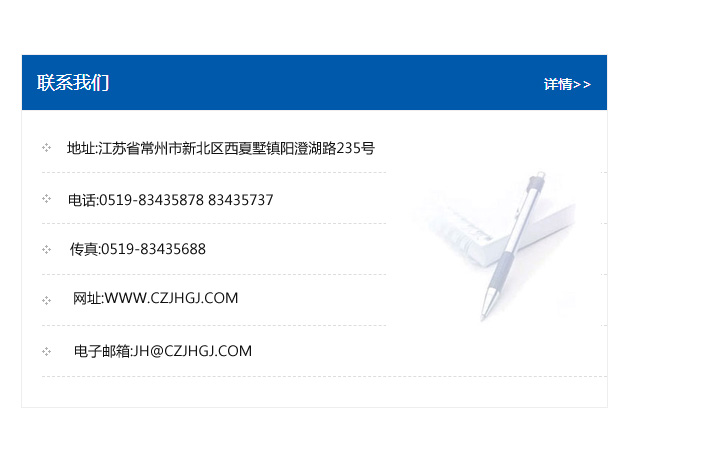 地址:常州市新北區友邦商務大廈1幢16、17層  電話:0519-85101652  傳真:0519-85112595  郵編:213022  網址:www.cz-jiayue_cn.666vote.com  郵箱:xiajifengaa@163.com